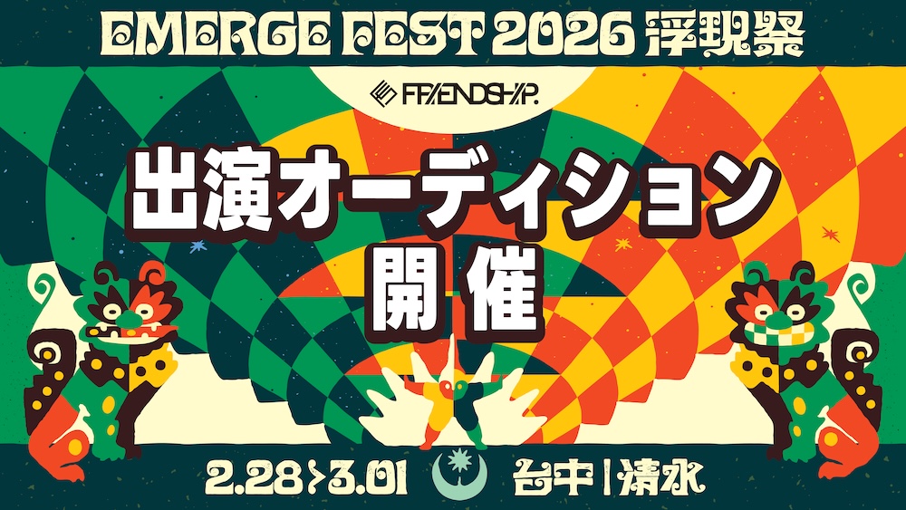 2026年2月に台湾・台北の清水鰲峰山運動公園で開催される音楽フェスティバル 浮現祭2026 Emerge Fest.とFRIENDSHIP.のコラボレーション企画が決定した。